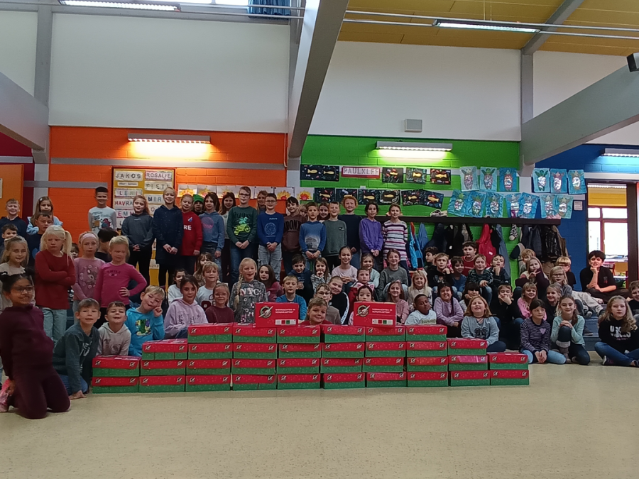 Der Nikolaus besuchte die Kinder und verteilte Geschenktüten – für jede Klasse eine.