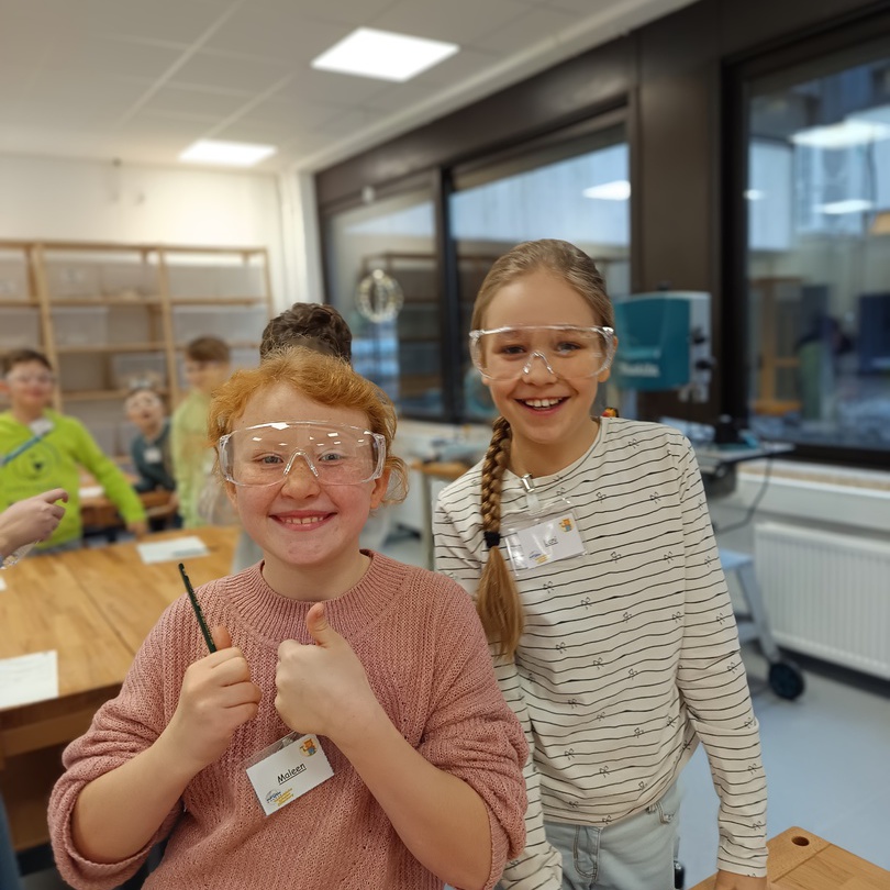 Frau Gümpelein, Frau Dr. Kringe sowie die Schülerinnen und Schüler der Forscher-AG nahmen die Kinder herzlich in Empfang und begleiteten sie durch den gesamten Vormittag.