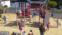 Kurz vor den Osterferien wurde der Spielplatz, den die Schule mitbenutzt von der Stadt Haiger erneuert. Jetzt bietet er viele Spielmöglichkeiten, unter anderem eine Kletterwand, Ringe zum hangeln, neue Schaukeln etc. Die Kinder lieben den neuen Spielplatz! Spielplatzerneuerung