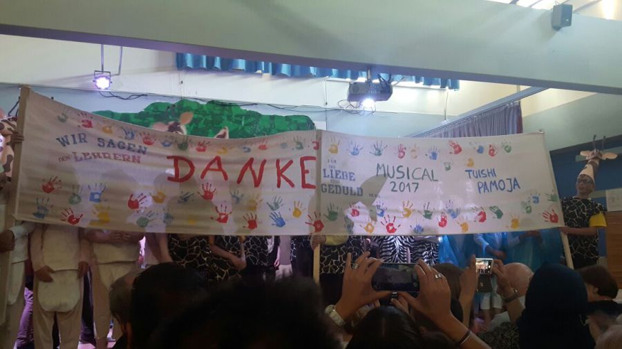 Im Mai 2017 führte unsere Schule an zwei Abenden das Musical "Tuishi Pamoja" vor mehr als 300 Zuschauern auf. Unsere 66 Akteure begeisterten das Publikum durch ihren Gesang, die Kostüme und die Darstellung ihrer jeweiligen Rollen. Natürlich war die heimische Presse ebenfalls dabei und hat über unser Musical in der Zeitung berichtet. Hier geht es zum Artikel und einigen Bildern.