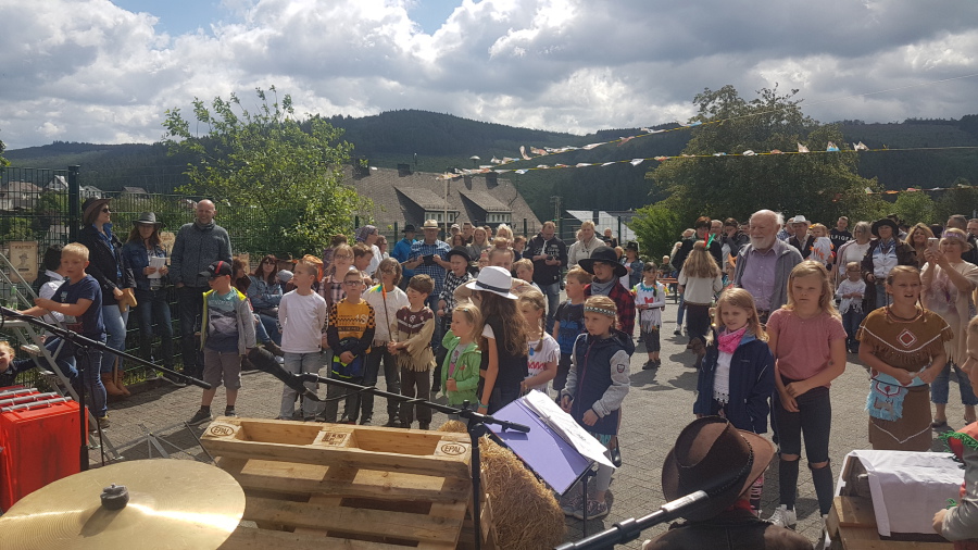 Am 8. Juni 2019 fand unser Schulfest zum Thema "Wilder Westen" statt. Nachdem man zunächst in der "Bank" seine Euros gegen MGS-Dollars wechseln konnte, ging es auf dem gesamten Schulgelände weiter mit der Erkundungstour. Es gab verschiedene Spielstationen wie Pfeil und Bogen, Goldschürfen, Spurenlesen, Büchsenwerfen etc., die bei Groß und Klein gut ankamen. Die Schullehrerband "The Hit Mountaineers" heizte dem Publikum mit Songs wie "Country Roads", "Hang down your head Tom Dooley", "I will dance", oder " Cowboy Jim aus Texas" ein. Für das leibliche Wohl sorgte der Förderverein, der u.a. Hamburger verkaufte. Hier einige Impressionen.